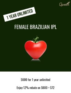 Qween 12-months UNLIMITED Female Brazilian (excluding crack) IPL package @ $600 + 7% GST = $642