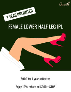 Qween 12-months UNLIMITED Female Lower Half leg IPL package @ $900 + 7% GST = $963