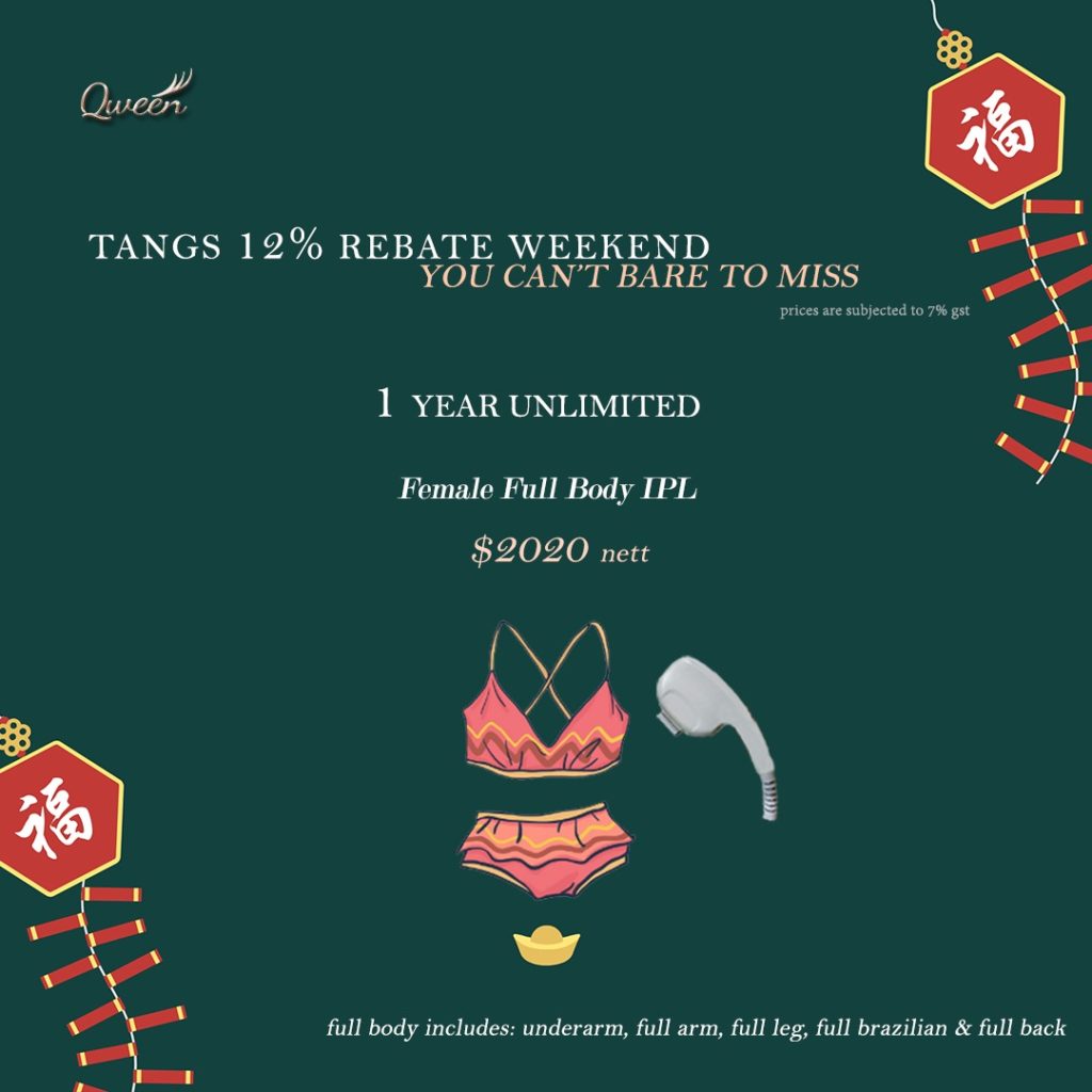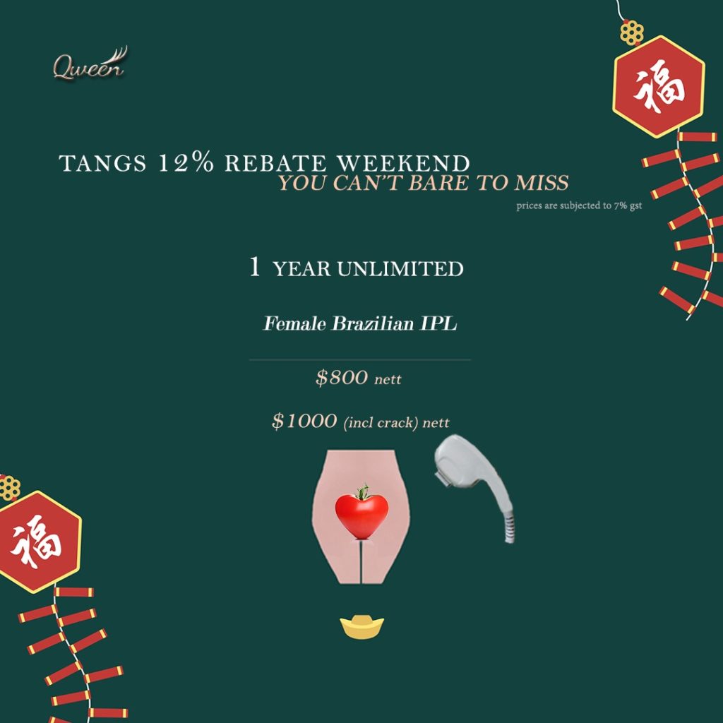 If you like the painless treatment, sign up for our 1 year IPL special packages  at Tangs Plaza or via https://www.tangs.com/productlist/Brands/qween
