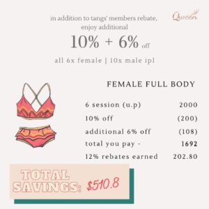 QWEEN FIRST EVER 10% off + extra 6% off IPL packages and add on Tangs' members 12% rebate!